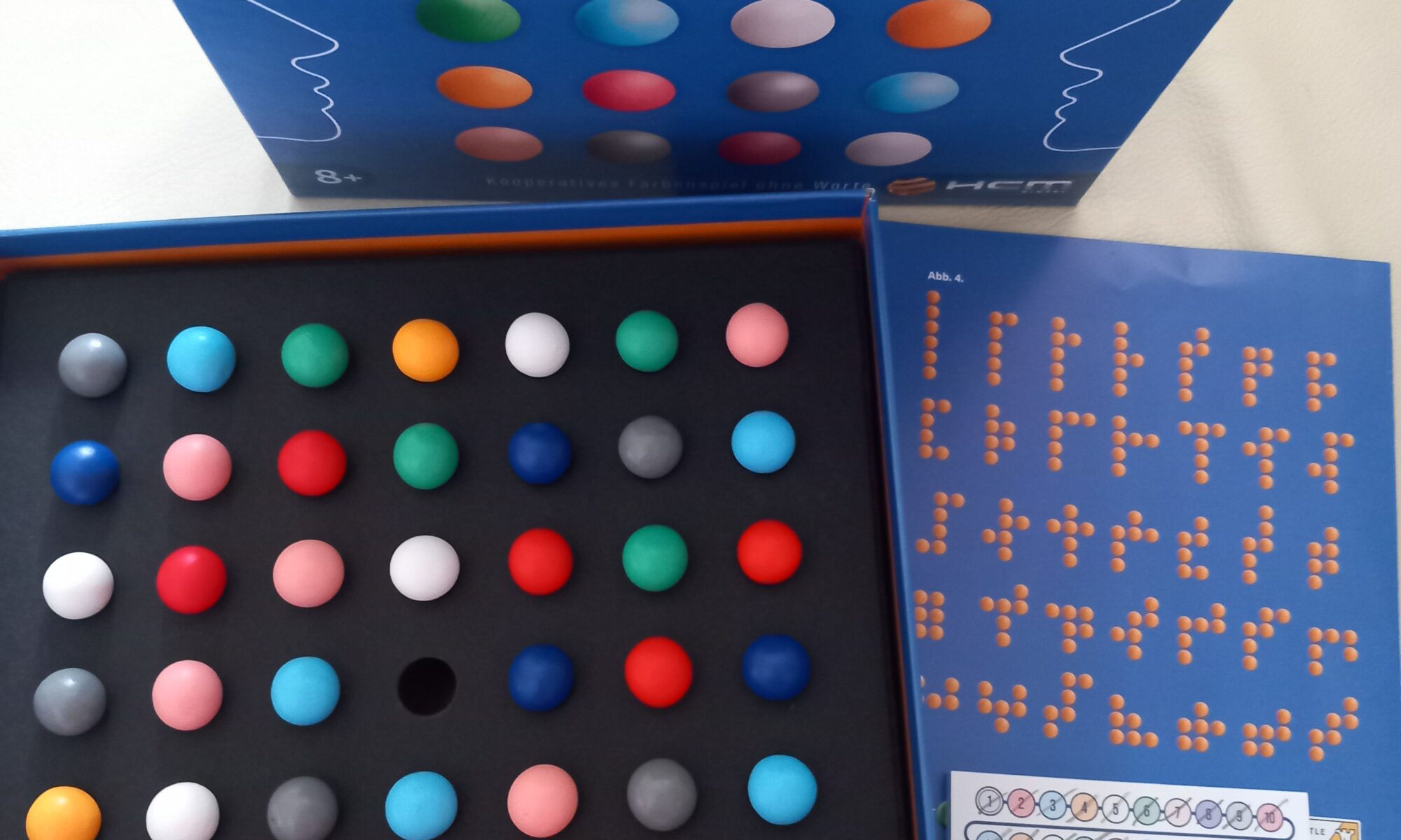Ohne euch abzusprechen versucht ihr die Kugeln in Farbgruppen zu sortieren, indem ihr jeweils eine Murmel in das frei Loch setzt. Gedanken lesen nicht ausgeschlossen! Wenn ihr es schafft acht verschiedene Formen mit den Murmeln in einer Farbgruppe zu bilden und auch noch das mittlere Loch frei last, habt ihr mit den wenigsten Spielzügen die höchste Punktzahl.